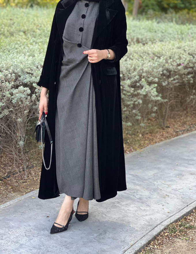 Grey Velvet Blazer Laced from behind and sides comes with a sleevless inner dress
